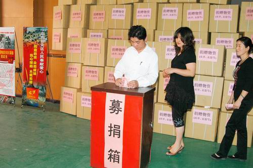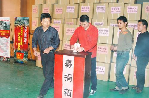 災(zāi)難無情人有情。四川地震災(zāi)情牽動著每一個人的心。在災(zāi)難發(fā)生后的第二天,公司董事長兼黨委書記張小赧放下手頭工作,迅速召開中高層管理人員工作會議,部署向災(zāi)區(qū)人民奉獻(xiàn)愛心:一方面要求公司工會全面了解川籍員工的受災(zāi)情況,做好慰問,為災(zāi)區(qū)員工盡可能提供更好的幫助;一方面要求下屬服裝廠緊急調(diào)撥衣物等災(zāi)區(qū)必需品;一方面由公司黨委、工會、團(tuán)委聯(lián)合發(fā)起向災(zāi)區(qū)人民奉獻(xiàn)愛心的倡儀,迅速得到了廣大干部、員工的熱烈響應(yīng)。5月17日下午1時,公司在大禮堂舉行了現(xiàn)場募捐活動,公司領(lǐng)導(dǎo)、黨員、管理人員和部分員工參加了集體募捐活動,在不到半個小時就為災(zāi)區(qū)人民募集善款善物共計22萬元,其中物資5萬元,匯集三友濃濃愛心的首筆善款善物將通過地方慈善總會送往災(zāi)區(qū)。
