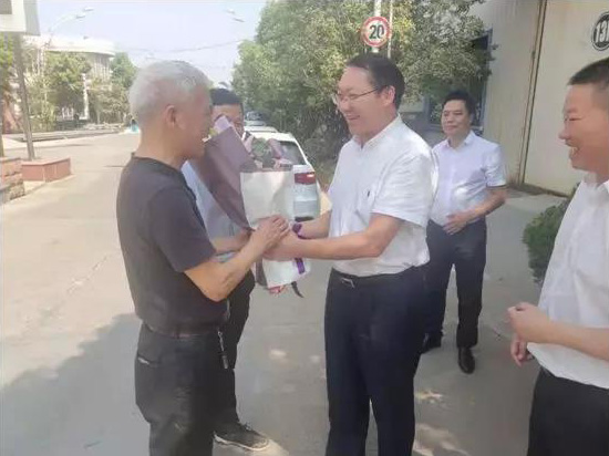 9月28日,在新中國70華誕來臨之際,臺州市總工會黨組書記、常務(wù)副主席施華興一行慰問浙江省勞!芽毓杉瘓F副董事長蔣傳良,表達對勞動模范的崇高敬意!路橋區(qū)總工會黨組書記、主席應(yīng)仲友等陪同慰問。