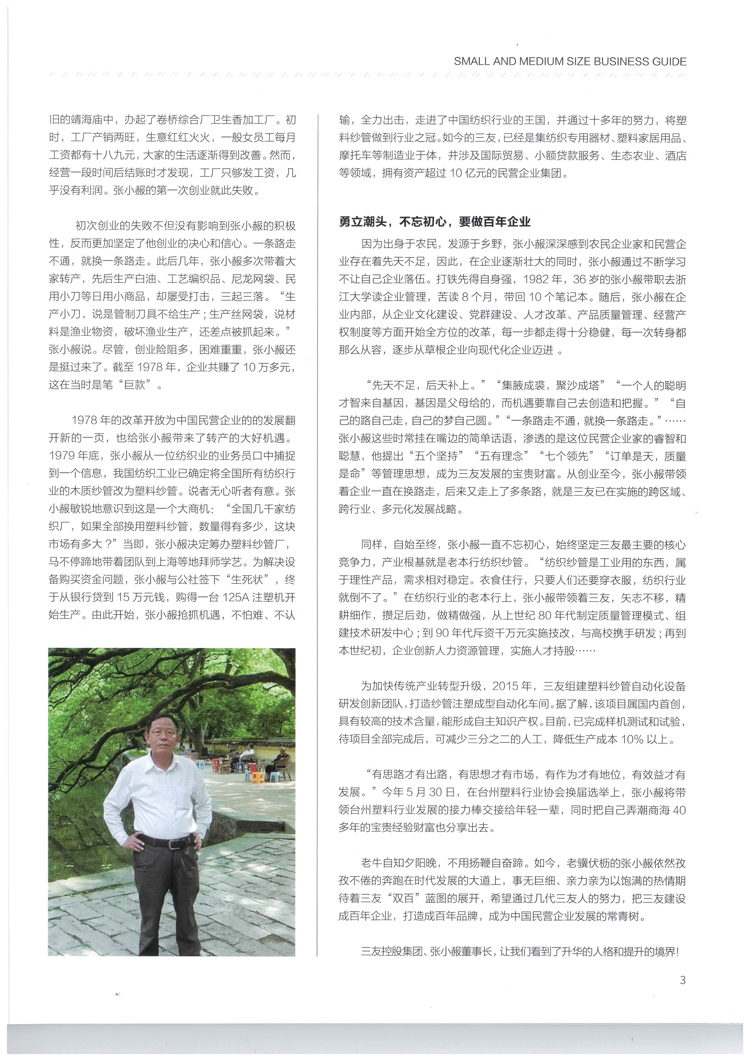 浙江省中小企業(yè)協(xié)會(huì)《中小企業(yè)導(dǎo)刊》刊登——三友控股集團(tuán)董事長(zhǎng)張小赧