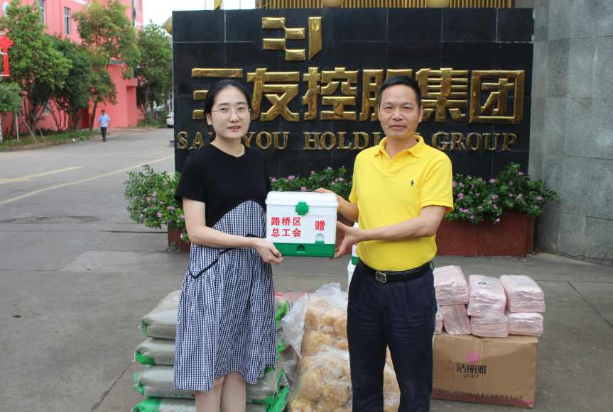 8月4日,臺(tái)州市路橋區(qū)總工會(huì)副主席王敏力在金清鎮(zhèn)總工會(huì)主席梁小峰的陪同下來三友控股集團(tuán)有限公司開展送清涼活動(dòng)。集團(tuán)公司總經(jīng)理張利敏陪同參加。