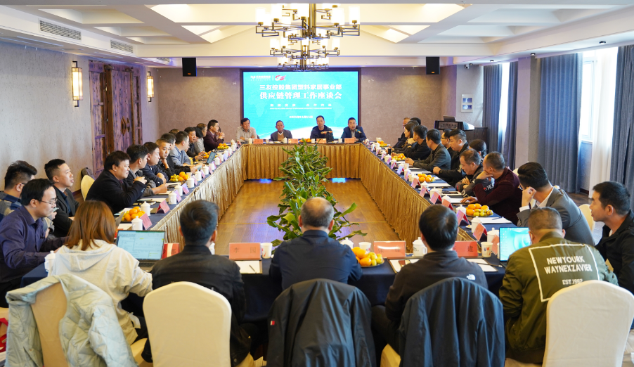 11月11下午,三友控股集團(tuán)塑料家居事業(yè)部供應(yīng)鏈座談會在三友國際酒店召開。集團(tuán)公司財務(wù)、采購負(fù)責(zé)人、塑料家居事業(yè)部管理人員、FBA(中國)辦事處負(fù)責(zé)人、設(shè)備供應(yīng)商代表、原輔材料供應(yīng)商代表、外加工企業(yè)代表、物流企業(yè)代表等30余人參加會議。集團(tuán)公司董事長張小赧、總經(jīng)理張利敏參加,集團(tuán)公司副總經(jīng)理楊國慶主持會議。