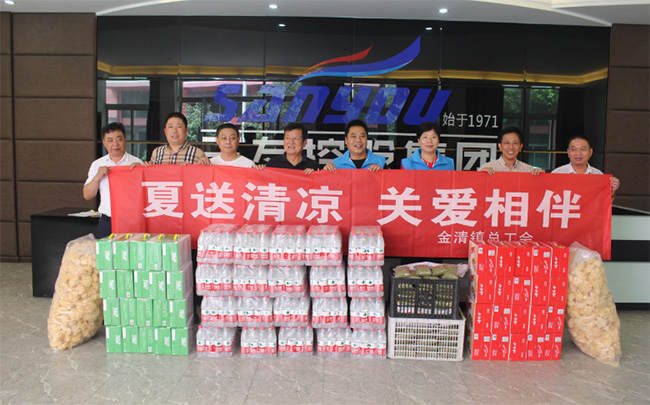 7月18日,臺州市路橋區(qū)金清鎮(zhèn)總工會梁小峰帶隊來三友控股集團有限公司開展送清涼活動。集團公司工會主席張春富等領(lǐng)導(dǎo)陪同參加。