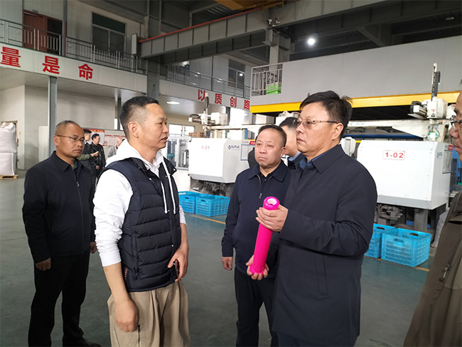 景書記一行先后參觀了成型車間、日用品車間及摩托車車間。走訪期間,集團(tuán)公司總經(jīng)理張利敏與景書記就雙方經(jīng)濟(jì)發(fā)展情況、產(chǎn)業(yè)政策、資源要素等方面進(jìn)行了介紹交流。
